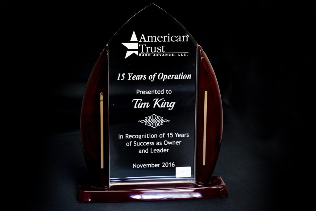 Last Friday I ordered customized name plates to mount on each of the walnut jewelry boxes I made for our five granddaughters. Not only are they beautiful and perfect, Christie completed the order the following Monday, two days earlier than originally promised. Today I was notified I was the winner of their $100 Christmas cash drawing. Am I a “happy camper? You bet I am!!! They do outstanding work at reasonable prices, and deliver on time. I HIGHLY recommend Trophies Unlimited.